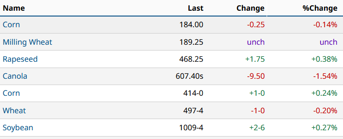 Poniedziałkowe (13.10.2025) notowania na Matif, w Winnipeg i w Chicago (z godziny 12:00)