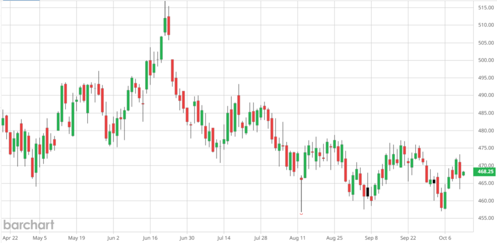 Trzeba zauważyć, że już rekordowe wyniki produkcji pszenicy na świecie systematycznie rosną w aktualizowanych prognozach/szacunkach. 30-go września USDA podniósł krajowe zbiory o 1,44 mln ton do wysokiego poziomu 53,89 mln ton (nieco więcej niż przed rokiem). Kilka dni wcześniej, Komisja Europejska podniosła szacunki zbiorów pszenicy w UE-27 aż o 4,5 mln ton do 284,17 mln ton – najwięcej od 2020 roku.