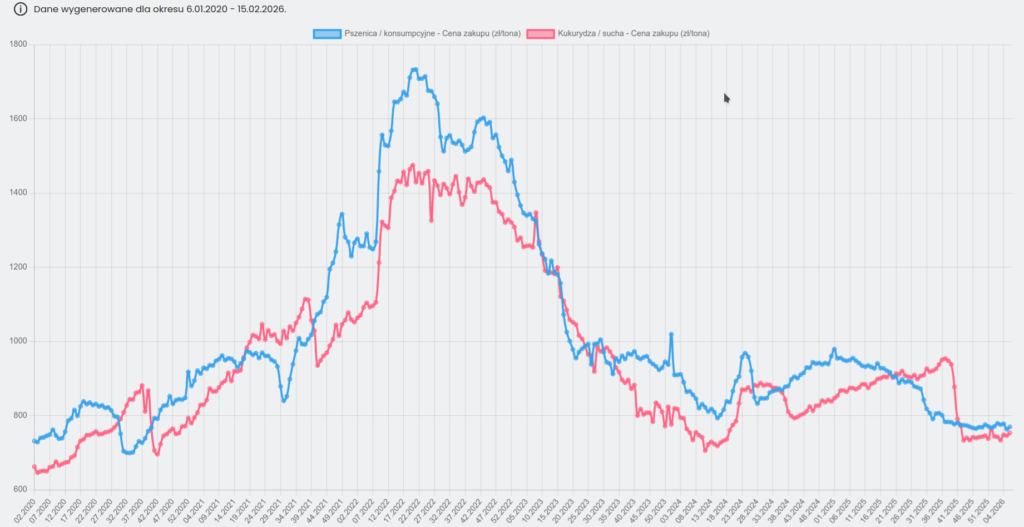 Cena pszenicy i kukurydzy w Polsce od 2020 roku – WYKRES