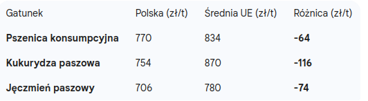 Porównanie faktycznych cen zakupu w Polsce do stawek w innych krajach Wspólnoty potwierdza, że polskie ziarno pozostaje jednym z najtańszych surowców w Europie.