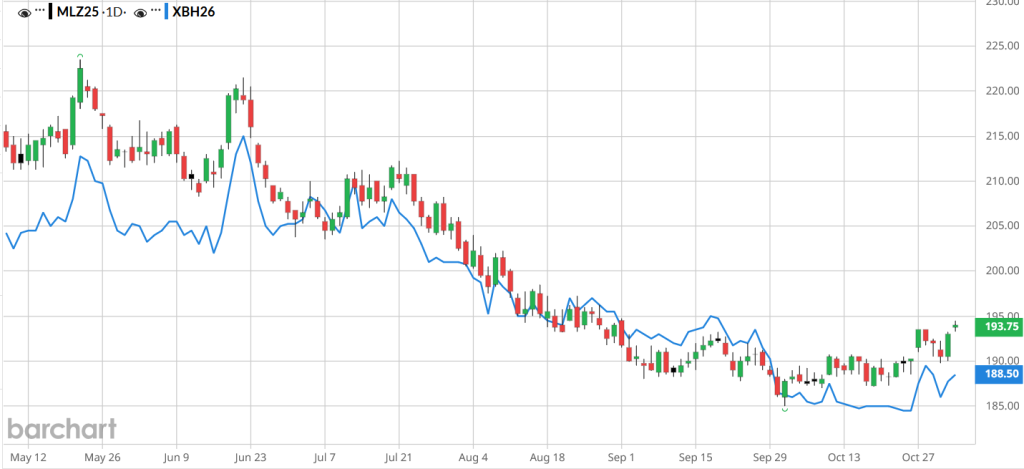 📈Ceny zbóż na giełdzie Matif (pszenica – seria na grudzień 25 i kukurydza – marzec 26)