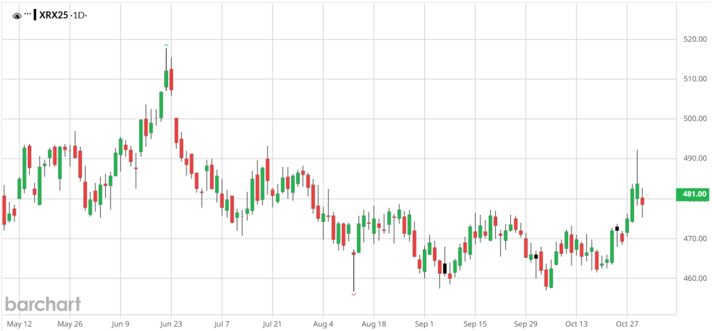 Jeśli obecny trend się utrzyma, listopad może przynieść test kolejnych poziomów oporu – zwłaszcza na soi i pszenicy. Więcej informacji powinien przynieść listopadowy raport USDA (w październiku się nie ukazał z powodu zamknięcia rządu w USA) na temat relacji krajowej i światowej podaży do popytu.