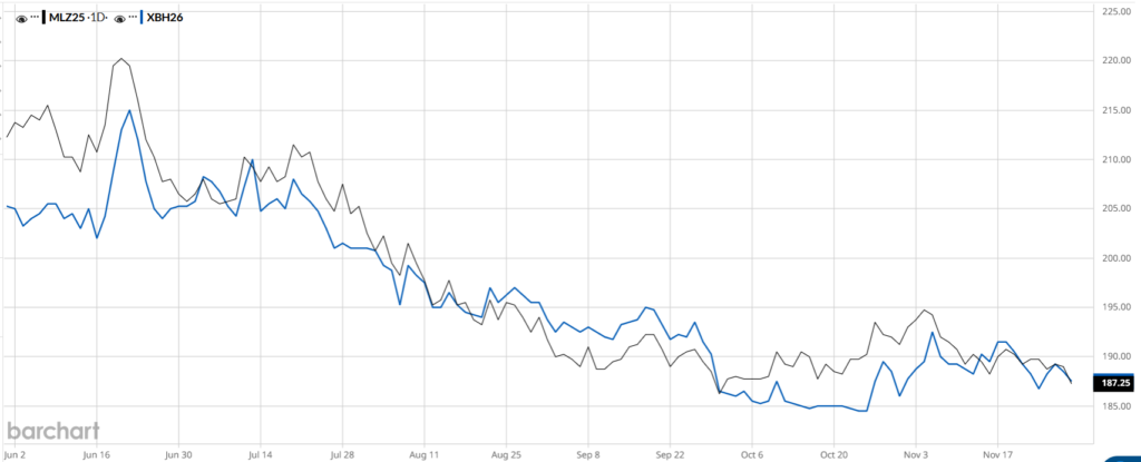Rynek pozostaje również wrażliwy na przebieg rozmów pokojowych między Ukrainą a Rosją – każdy postęp lub brak postępu natychmiast wpływa na premię ryzyka i przyszłą logistykę handlu z regionem Morza Czarnego.