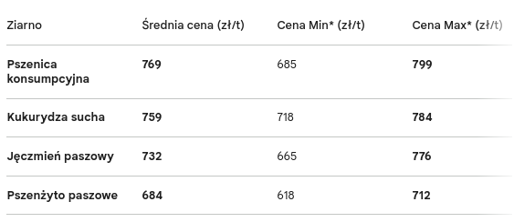 Notowania pokazują wyraźną rozpiętość między średnią ceną a stawkami maksymalnymi, które zazwyczaj dotyczą dostaw do portów i dużych terminali eksportowych.