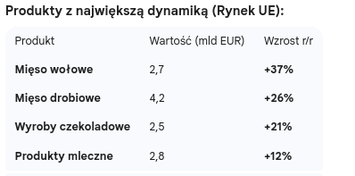 Mimo wyzwań kursowych, które nieco studziły dynamikę sprzedaży poza UE (+3%), eksport polskiej żywności na rynek wspólnotowy kwitnie: