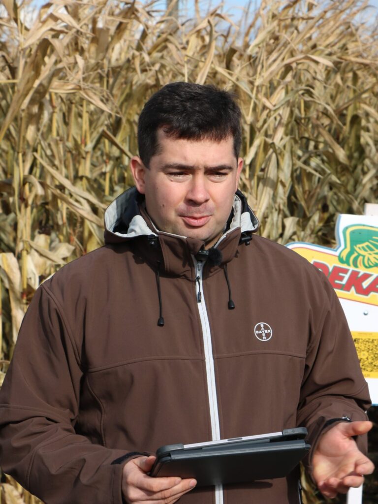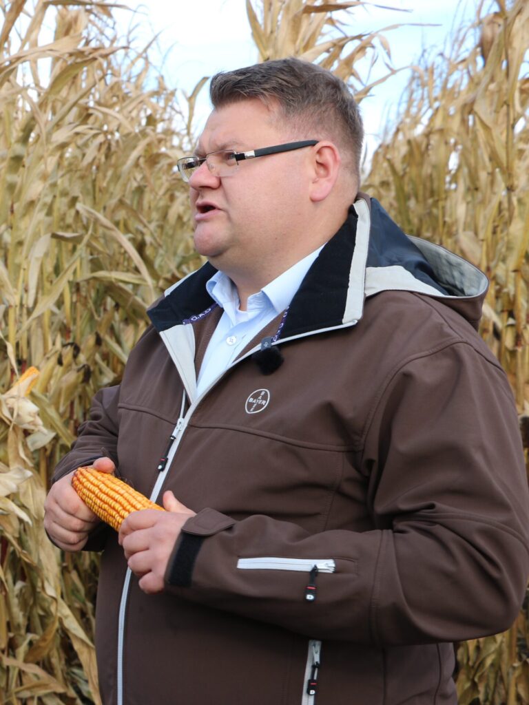 – Na tej plantacji, gdzie od 11 lat prowadzone są poletka pokazowe, nieprzerwanie uprawiana jest kukurydza. Od czterech lat stosowany jest system uprawy bezorkowej. To doskonały przykład na to, że przy odpowiednim doborze odmian, właściwej agrotechnice i regularnym monitorowaniu stanu gleby kukurydza może być z powodzeniem uprawiana w monokulturze, osiągając stabilne i wysokie plony – mówił Bartosz Malanowski, doradca techniczno-handlowy Bayer.
