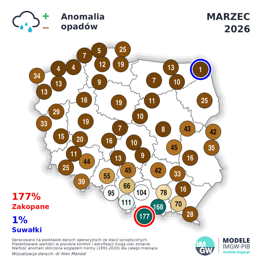 Podsumowanie opadów w marcu 2026