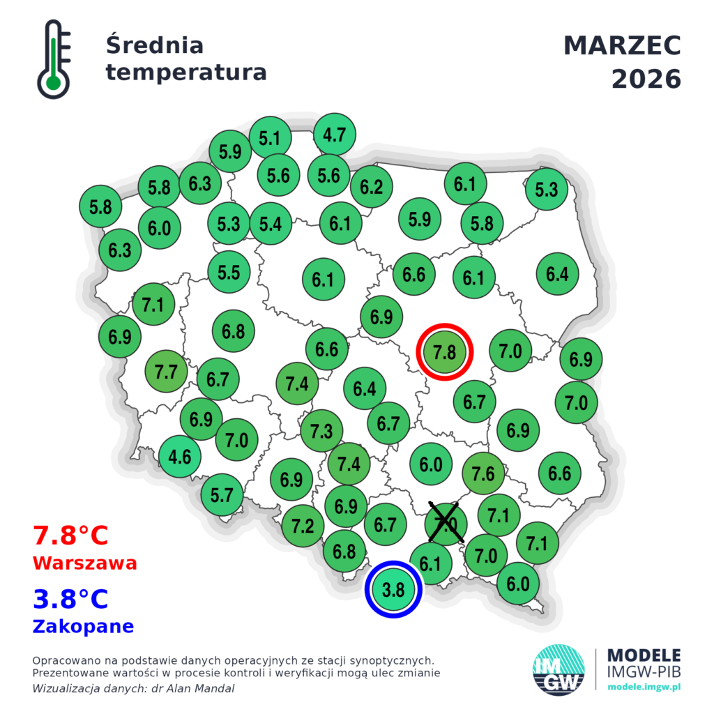 Temperatura w marcu 2026