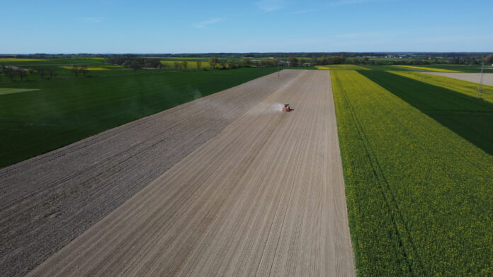 – Znajdujemy się w Grudyni, gdzie siejemy soję na 123 hektarowym polu. Temperatura gleby jest odpowiednia, wynosi ponad 12 stopni. Jedyne czego by się chciało więcej, to wilgoci w glebie. Niestety gleba jest bardzo mocno przesuszona, dlatego powiększyliśmy troszeczkę głębokość siewu do około 3-4 centymetrów. Planuje też po siewie wykonać wałowanie jeszcze przed opryskiem doglebowym, żeby zwiększyć podsiąk, żeby troszeczkę więcej zatrzymać tej wilgoci w glebie.