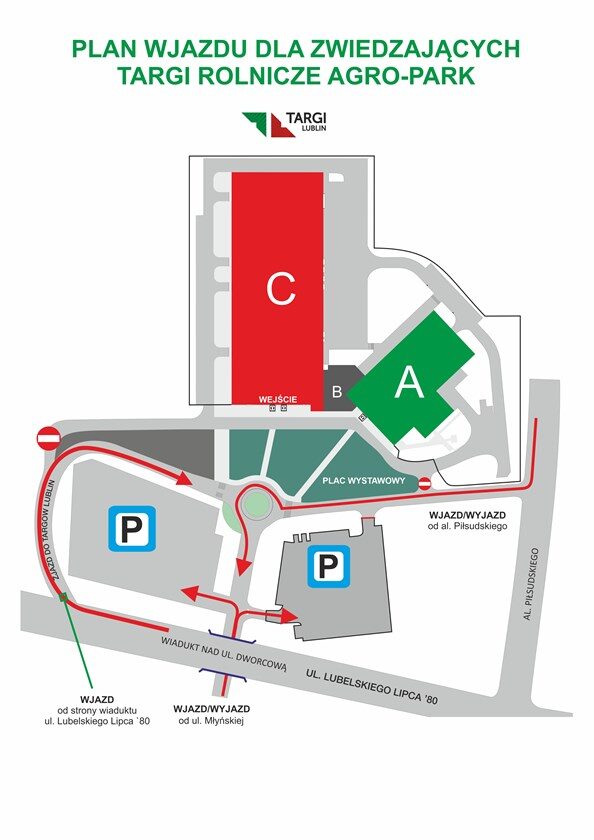 - Parking bezpłatny – miejsca parkingowe na terenie Targów Lublin przy ul. Dworcowej.