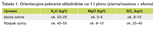 Pierwszym krokiem do zbilansowanego nawożenia jest oszacowanie potrzeb pokarmowych roślin, czyli ilości składników, które roślina musi pobrać, aby wytworzyć zakładany plon. Dla uproszczenia można posłużyć się orientacyjnymi współczynnikami pobrania K2O, MgO i SO3 na 1 tonę plonu głównego z odpowiednią ilością słomy.