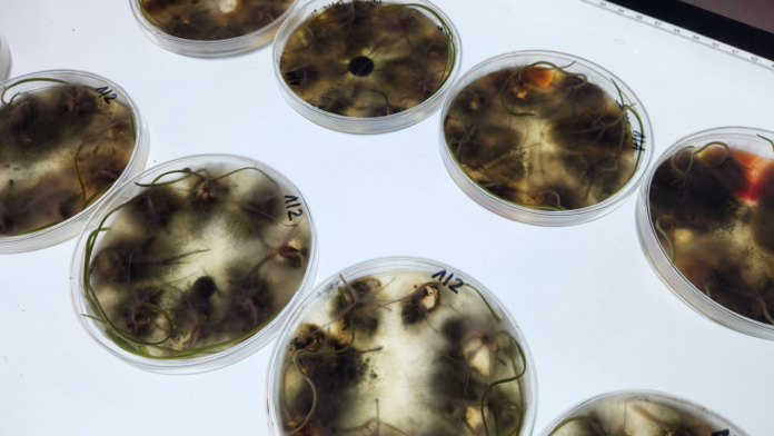 Zboża ozime – brak presji infekcyjnej na liściach, duży problem na systemach korzeniowych. Na liściach zbóż ozimych nie stwierdzono inkubacji sprawcy septoriozy liści – objawy nie wystąpiły w żadnej z ocenianych prób. W jęczmieniu ozimym na części materiału obserwowano symptomy plamistości siatkowej typu SPOT i NET, jednak porażenie miało charakter umiarkowany i nie stanowiło bezpośredniego zagrożenia dla plantacji.