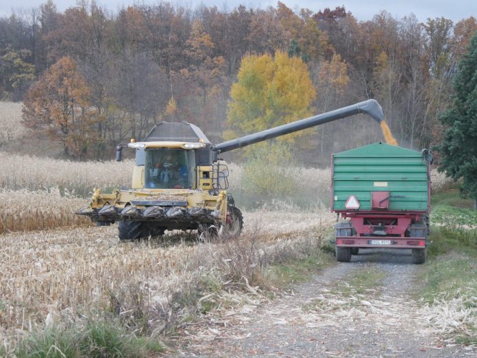 Z dużym opóźnieniem rozpoczęły się żniwa kukurydzy na ziarno. Wprawdzie ziarno jeszcze dojrzewa w kolbach, ale cena jest wyjątkowo niska i nie zapowiada się, że będzie wyższa, więc niektórzy postanowili zebrać kukurydzę ziarnową na kiszonkę i sprzedać ją hodowcom, którzy zrobią z niej kiszonkę dla bydła.